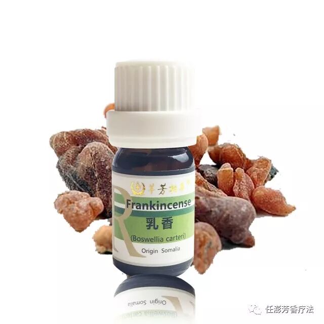 乳香精油主要成分是单萜烯(α-松油萜)、酯类(乙酸正辛酯)和倍半萜烯(β-丁香油烃),选用乳香因其促进粘膜再生、激励免疫系统,止痛消炎。